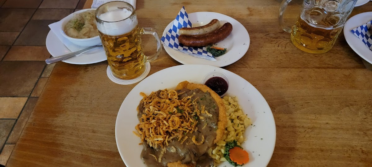 The menu at Hofbrauhaus is a delightful homage to traditional German fare, offering an array of mouthwatering dishes. Indulge in the Bayerische Spezialitätenplatte, featuring a tantalizing platter of smoked pork loin, pork roast, and smoked sausage, all perfectly complemented by dark beer sauce, imported sauerkraut, and creamy mashed potatoes for $40.60. If you're a fan of schnitzel, the Jägerschnitzel (Pork cutlet "Hunter style") topped with a velvety mushroom sauce is a must-try, while the Schweinebraten (Munich pork roast) takes comfort food to a whole new level, served with a delightful vegetable garnish and flavorful dumplings at $36.25.